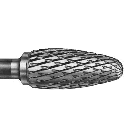 Fraise en tungstène de denture moyenne pour le travail de la résine. Fraise avec denture croisée dotée d'excellentes performances. Avantages : - Grand nombre d'arrêtes de coupe pour une longévité prologée - Denture universelle et croisée permettant un travail ergonomique La gamme E est également disponible en d'autres formes. Vitesse de rotation : 15 000tr/min