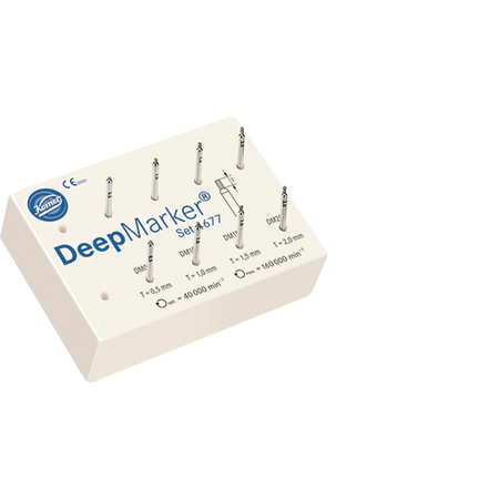 3. Les versants cuspidiens, puis le sillon occlusal sont ainsi marqués sans danger grâce à l’effet de butée qu’offre la DeepMarker. Dans cette indication clinique, le choix est porté sur le respect d'une épaisseur occlusale d’au moins 1,5 mm.
